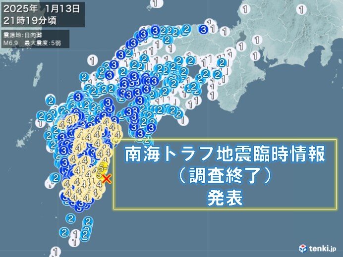 気象庁は先ほど「臨時情報・調査終了」を発表し、今回の地震によって現在のところ、南海トラフ沿いの大規模地震の発生の可能性が平常時と比べて相対的に高まっていないと判断しました。
