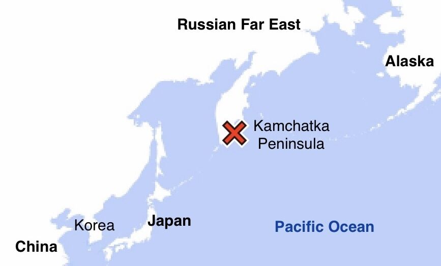 米地質調査所(USGS)の発表によると、地震の震源はカムチャツカ半島東岸の港湾都市、ペトロパブロフスク・カムチャツキーから約90キロの沖合で、震源の深さは約50キロ。